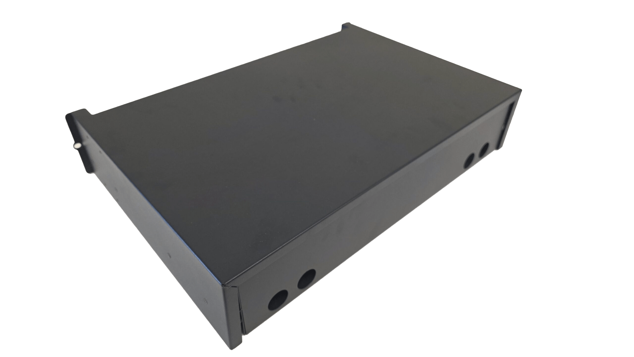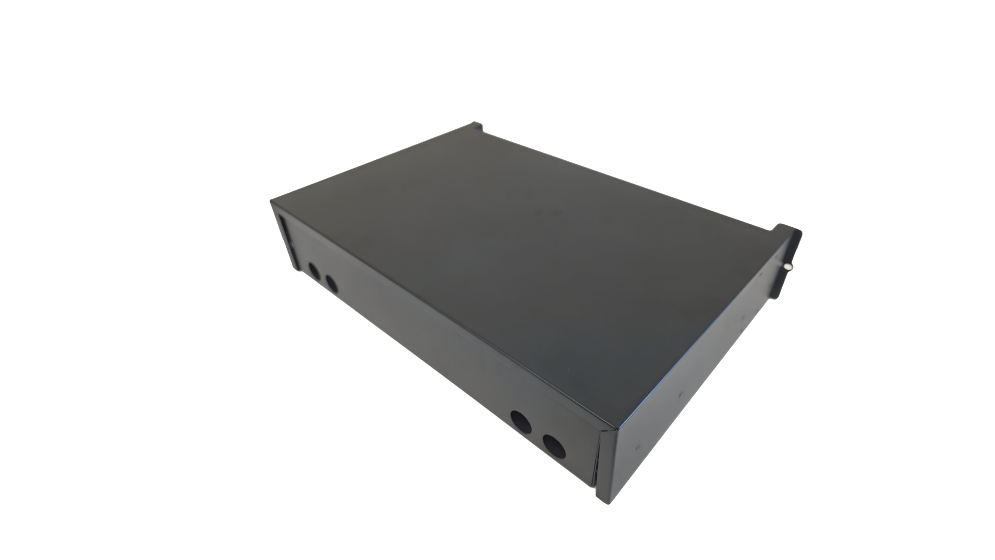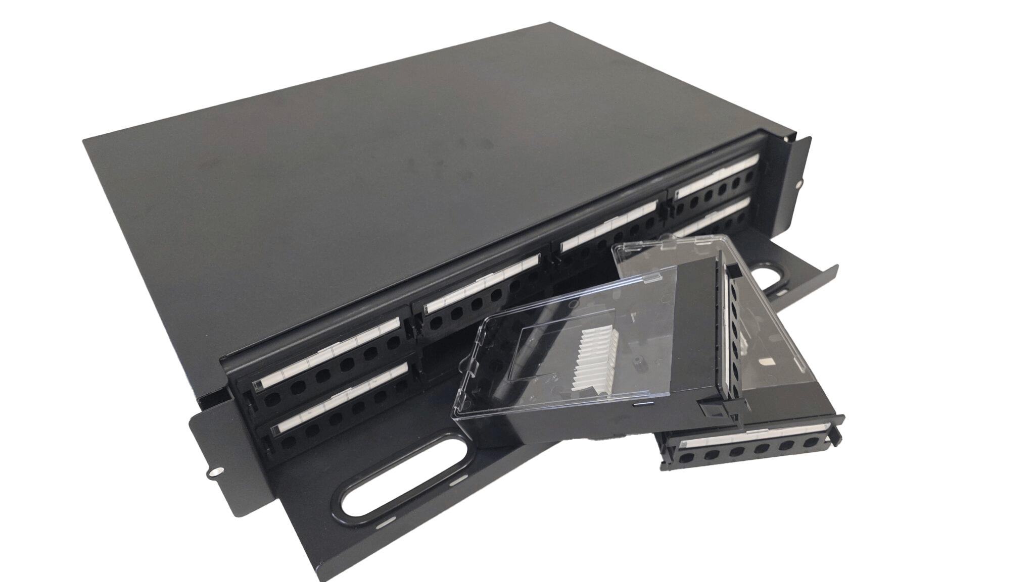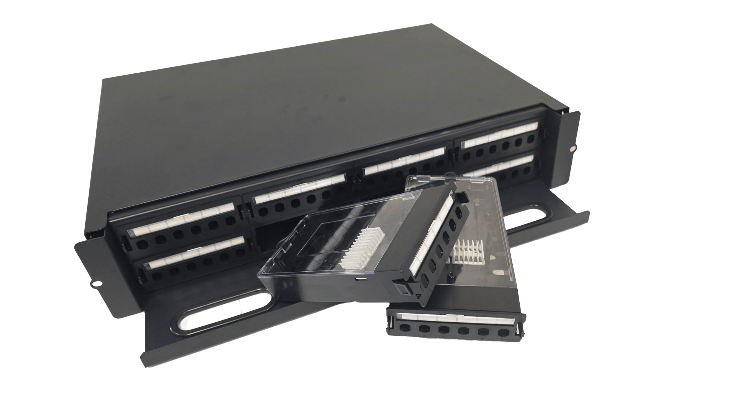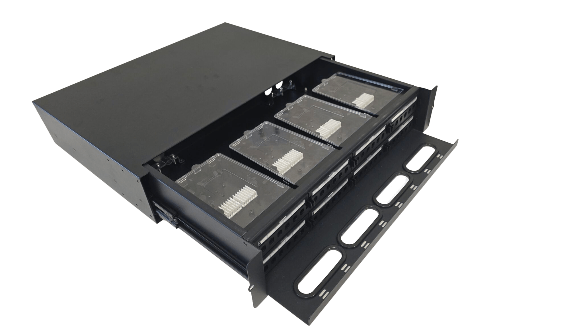 It is made of cold-roll steel box, with plastic splice tray inside, suitable for pigtail, ribbon and bunch cable distribution. And it has metal sliding fittings with self-locking functions to prevent the drawer from falling when moved.